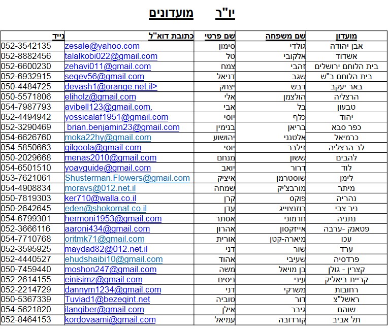 התאחדות הפטאנק בישראל חברי הנהלה ויושבי ראש מועדונים