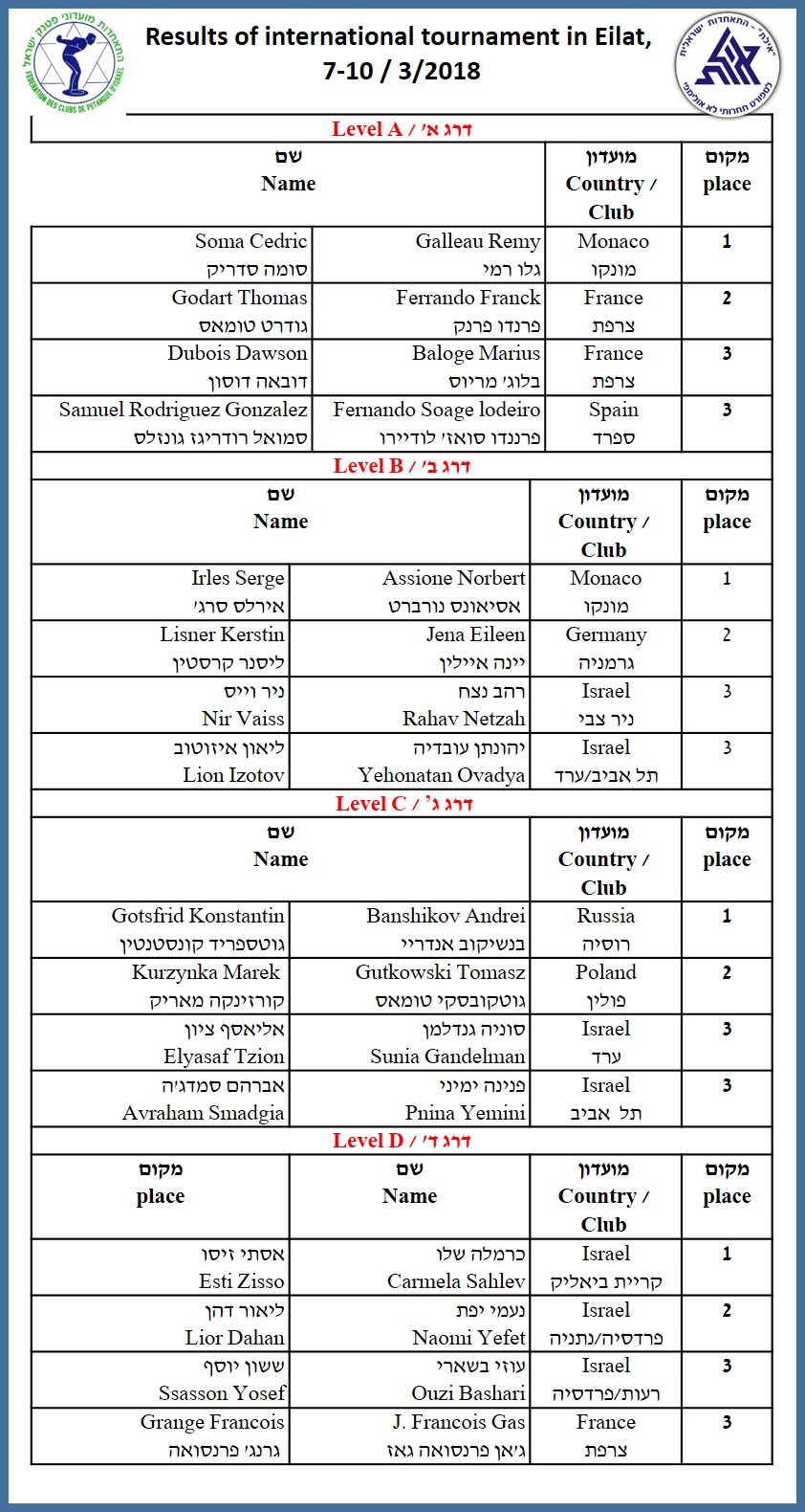 תוצאות טורניר בינלאומי