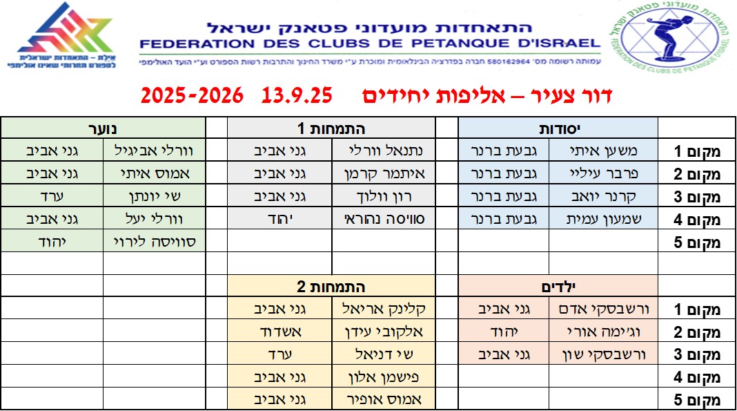 אליפות ישראל דור צעיר זוגות 2024-2025