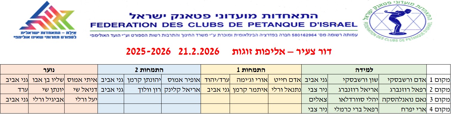 אליפות ישראל זוגות דור צעיר 20-21